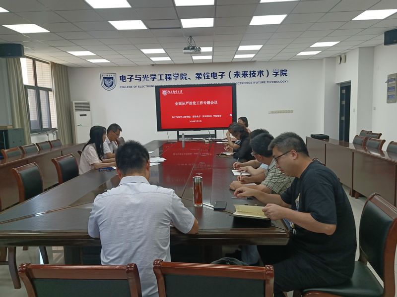 7月5日上午,3044am永利集团3044noc、柔性电子(未来技术)学院党委召开全面从严治党工作专题会议。全体党政领导班子成员、院长助理、科职干部、党风联络员参加会议,党委书记黄丽亚主持。