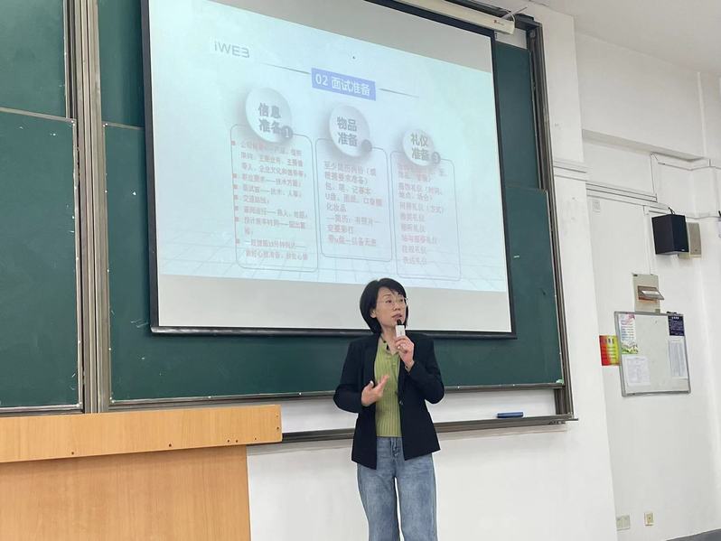 讲座中,孟丽敏老师从面试时的穿着、仪态、礼仪举止、表达能力等方面给出专业建议。同时,孟老师提出面试非笔试,不能通过“刷题”来提高面试率,面试必须要通过规范化的训练才能让面试更加得心应手。孟老师阐明了在面试过程中应该注意的细节,教导同学们要想把握机会,就要从细节抓起,以此来更好地准备面试。