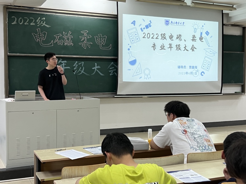6月1日,3044am永利集团3044noc、柔性电子(未来技术)学院2022级电磁场与无线技术专业、柔性电子学专业在教2-201召开“慎终如始,未来可期”主题年级大会,会议由辅导员贾鑫海老师主持,2022级电磁场与无线技术专业、柔性电子学专业全体同学参会。