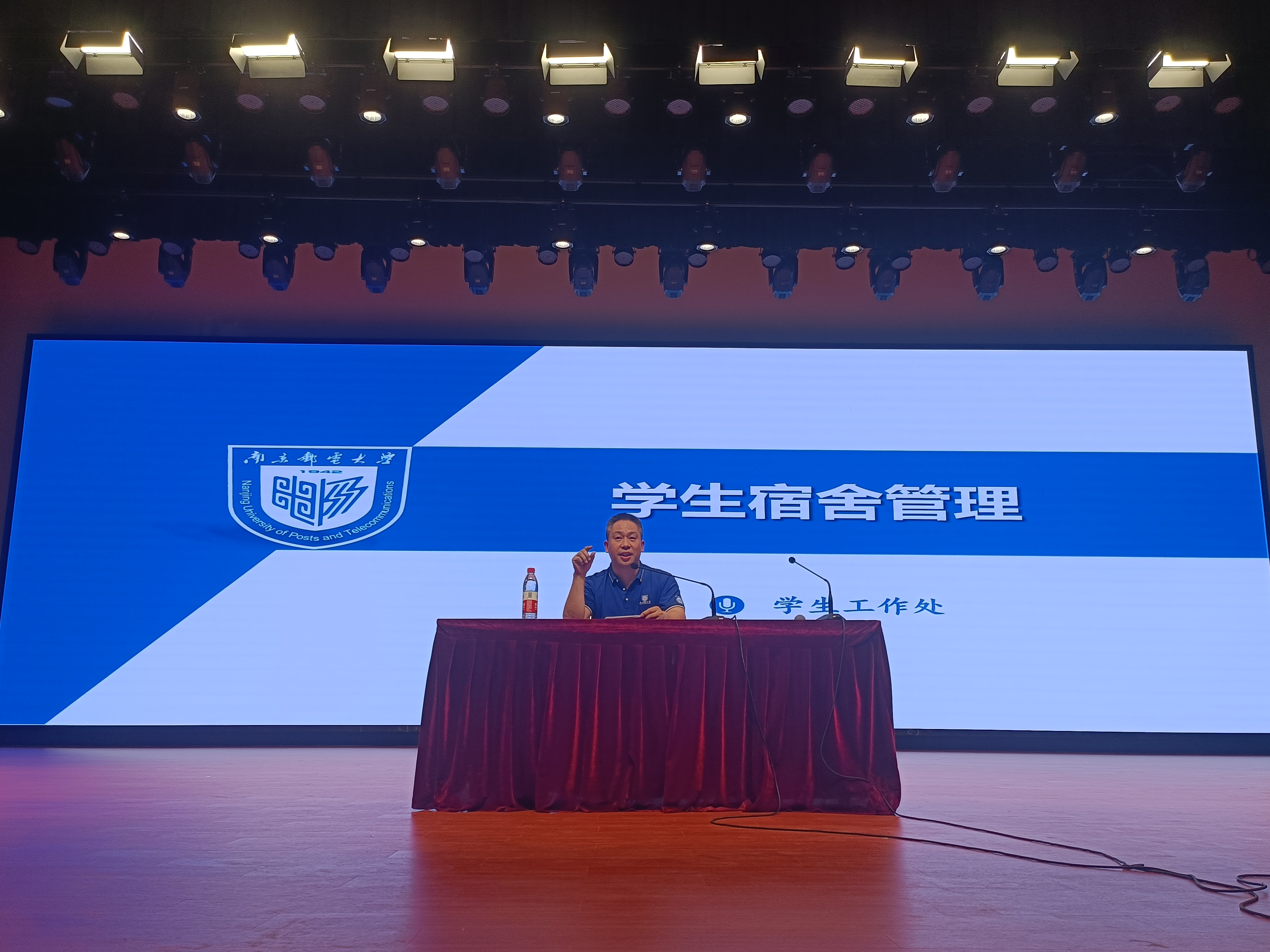 讲座中,叶刚老师就宿舍文明卫生检查、住宿手续办理、宿舍安全及防范等多方面展开了详细的分析,使新生们了解到学生宿舍是学生在校期间学习生活的重要场所,是学校对学生进行思想品德教育和行为养成的重要课堂,是学校精神文明建设的重要阵地。加强宿舍文明建设的管理,创造“整洁、优美、有序”的宿舍环境尤为重要。叶主任强调了寝室的安全管理和清洁卫生管理,呼吁同学们不把大功率电器带进宿舍,共同维护寝室安全;同时做好卫生清洁,共同营造干净的寝室生活环境。