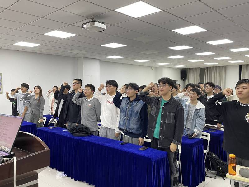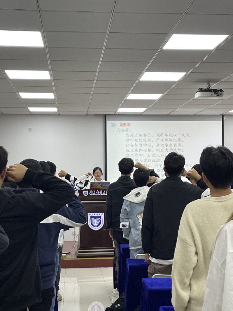 最后,B210203团支书顾凝婧带领全体班委会成员进行宣誓,铿锵有力的誓词在教室中回荡,更彰显出班委们的态度与决心。