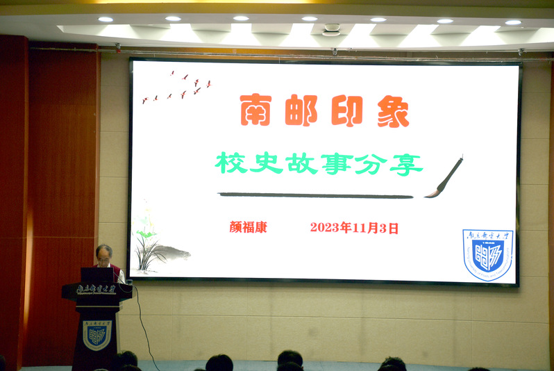 颜老师演讲围绕“根扎东甘霖、魂系三牌楼、梦飞美仙林”展开,以南邮精神为切入点, 详细阐述了学校的建设发展史、更名变化史、寻根史等,特别强调老校长秦华礼在学校发展中的卓越贡献。颜老师用生动的故事将南邮精神的内涵娓娓道来,鼓舞激励着在座的每一位学子。接着颜老师向同学们展示了校园七大奇景,这些景点不仅风景宜人,更是见证了学校厚重沧桑的发展史。整场讲座以生动的故事串联,让同学们更深刻地了解了母校发展史以及“信达天下、自强不息”的南邮精神。