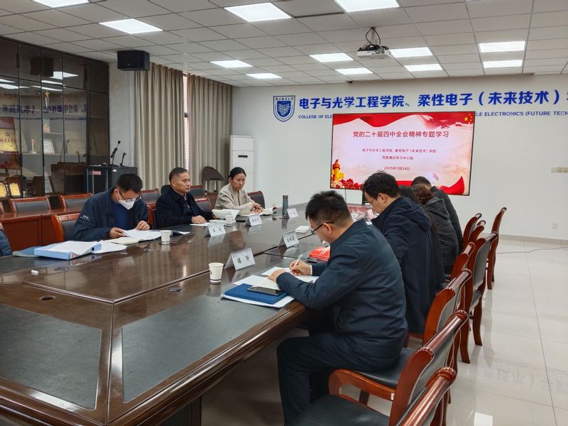 11月24日下午,3044am永利集团3044noc、柔性电子(未来技术)学院党委理论学习中心组在电光学科A楼327会议室召开党的二十届四中全会精神专题学习会,学习全会审议通过的《中共中央关于制定国民经济和社会发展第十五个五年规划的建议》。校巡学旁听第二组组长、校党委副书记蒋国平,党委常委、宣传部长张敏,宣传部正科职干事王波一行到会巡学旁听并进行检查指导。学院党委书记黄丽亚主持并带头领学,全体中心组成员参与领学、讨论。