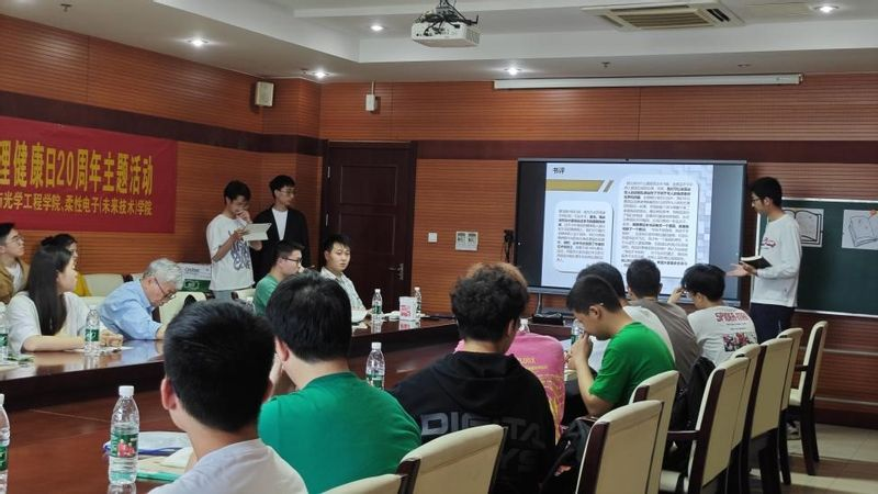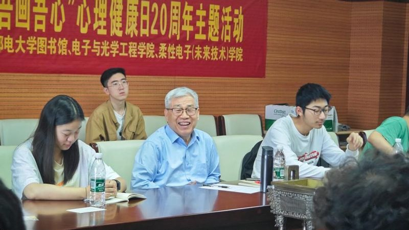 在5月25日全国大学生心理健康日来临之际,为落实立德树人根本任务,促进大学生身心健康和谐发展,提升大学生的阅读素养,丰富大学生的课余生活,5月22日下午,图书馆和3044am永利集团3044noc、柔性电子(未来技术)学院联合开展共读赋能——“柚见心灵,吾画吾心”心理健康日20周年主题活动。电光柔院B230200创新班全体学生,电光柔院、图书馆、读书协会师生代表共三十余人参加了本次活动,活动特别邀请关工委李雷教授现场指导。
