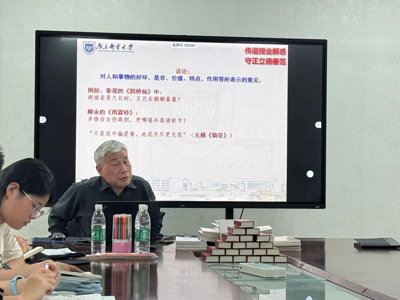李雷教授讲课幽默风趣,用文理结合的思想带领大家走进诗词。他剖析了诗词与科研、与人生的紧密联系,叙述了诗词所具有的表达、反映、服务三大功能,指出学诗可以情飞扬、志高昂、人灵秀。李教授呼吁南邮人能够从诗词中培养想象力,培养创新精神,为科技创新和社会发展贡献力量。