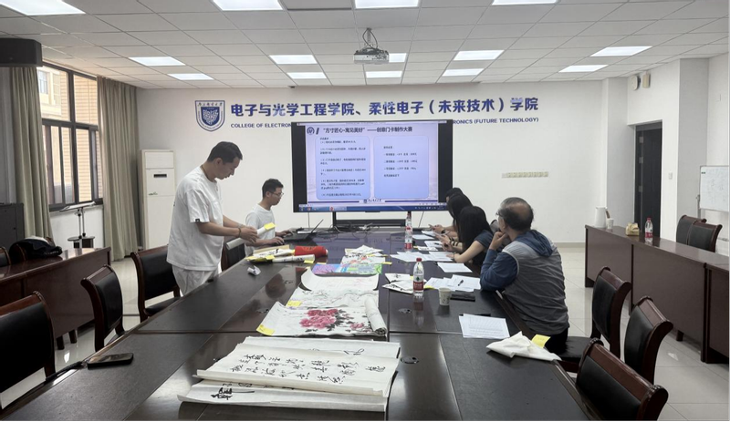 为深化“三全育人”体系建设,4月11日上午,3044am永利集团3044noc、柔性电子(未来技术)学院在电光楼A327举办第三届“柚子家年华”宿舍文化节作品评审活动。本次活动以“光熠舍影,电燃青春主场”为主题,特邀学院关工委成谢峰老师担任评审专家,与学院学生工作团队共同评选出展现新时代大学生精神风貌的优秀作品。