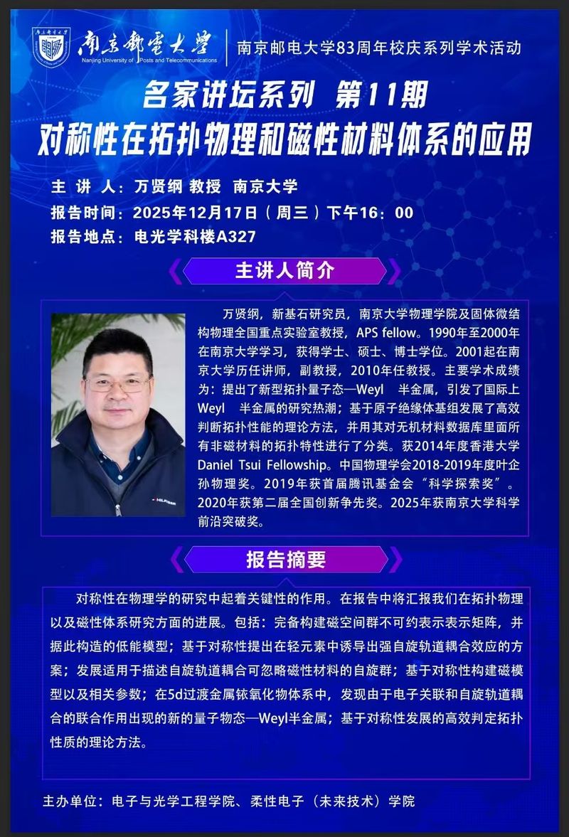 学术报告:对称性在拓扑物理和磁性材料体系的应用