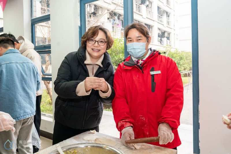 活动现场暖意融融。徐书记与同学们亲切交流,辅导员们融入学生之中,宿管阿姨们热心指导包饺子的技巧。同学们分组协作,从擀皮、包馅到创意造型,忙得不亦乐乎。尽管饺子形状各异,但每个都饱含心意,现场洋溢着欢声笑语。