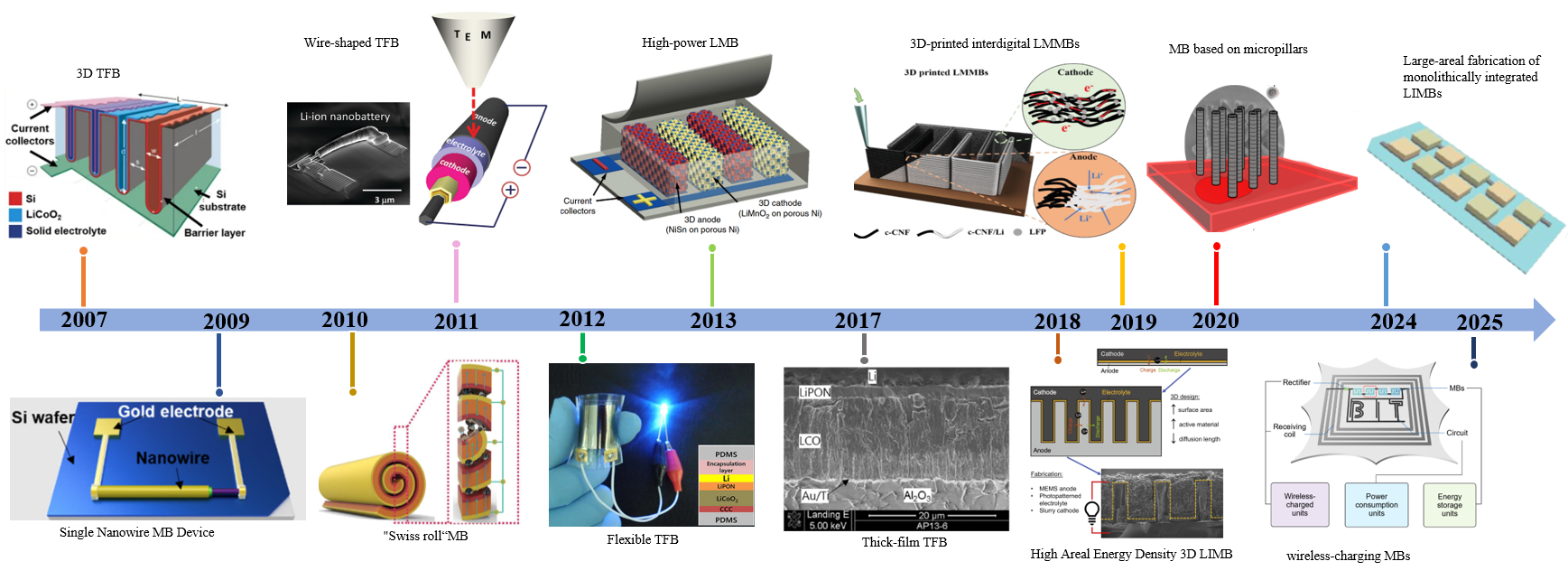 图2.典型微电池技术发展路线图